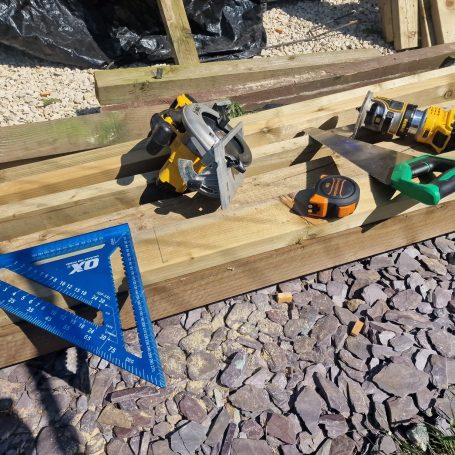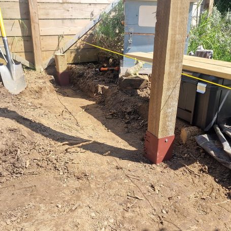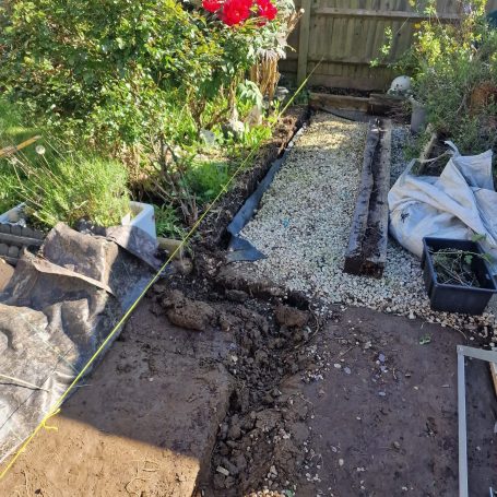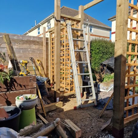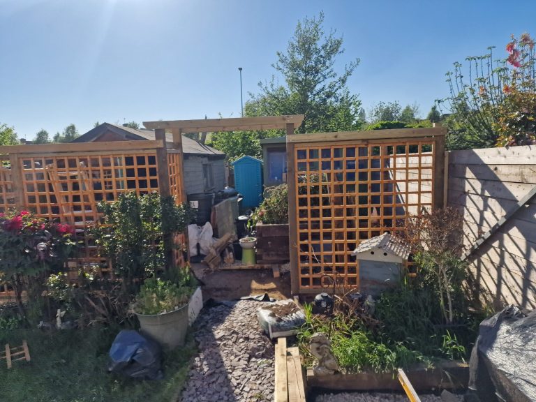 As you can see this meant digging out and levelling parts of the area for the trellis work & posts. After which we set out working on the design and setup of the job.