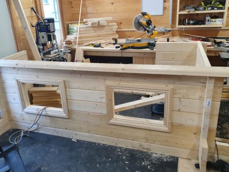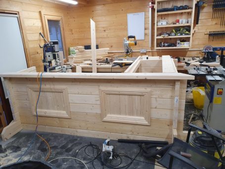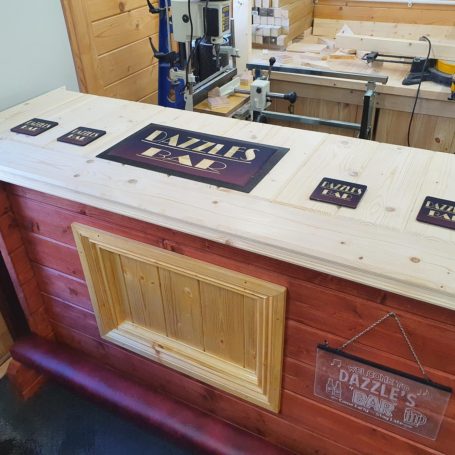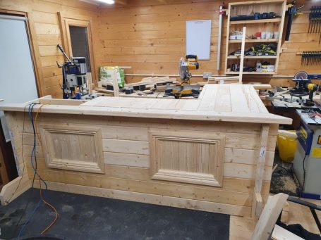 This customer contacted me directly by phone after a friend of mine showed them some work I had created for myself, they were looking for someone that could make a Bar to go in their Log Cabin Garden Room. They explained to us about their idea of making it so it fitted in with the interlocking design of their Log Cabin and I loved this idea and was happy to give them my advice and knowledge regarding the 5 point interlocking system, after we had worked out a suitable size ( 9ft by 5ft ) I worked out how long it would take to make it and the cost, which the customer did not bat an eye over, and just asked when could I start working on it for them, I said straight away which they were very happy to hear. So I set out sourcing the materials and milling them to the sizes required.