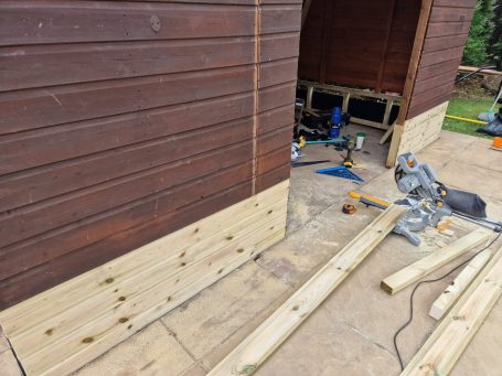 The customer contacted us after another company had given them our details as they needed the windows and doors re-aligned as the building had tilted to one side. So we went to view what was required, which worked out more challenging than the customer had realised as the reason for the windows and doors going out of mis-alignment was due to the floor subframe decaying on one side. So after explaining to the customer that it requires a complete new floor area, the customer asked MGR to make a floor that would last a lifetime so that is exactly what we did, it was a lot of work taking the building down replacing the floor and subframe with a new composite framework with stainless steel bracket system so it lasted, and then re-installing the building on the new floor exactly how it was at the beginning, then giving the whole building a fresh coat of protection.