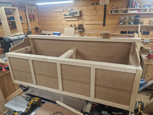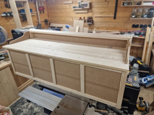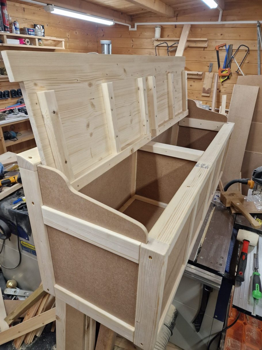 These returning customers asked me to create a large Toy Box for her two boys, she gave me the sizes she wanted it to be and a rough sketch of how she would like it to be, and MGR then set out designing it and creating it for the customer, the size was to be approximately 1400mm in length x 400mm depth x 500mm high, as you can see from the photos it came out well and the customers and their boys absolutely love it.